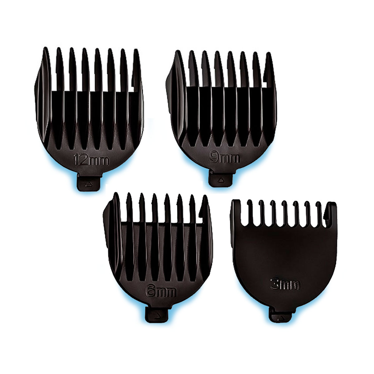 Com várias opções, você escolhe o tipo de pente, são 4 no total com 3, 6, 9 ou 12mm, ideais para aparar o cabelo ou pelos. Além disso, você tem autonomia total para definir a espessura e o desenho dos cortes que preferir.
