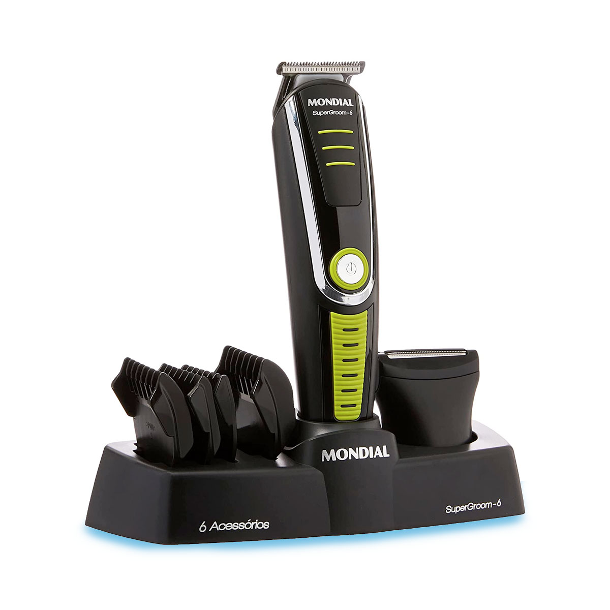 - 1 Aparador de Pelos Mondial Super Groom 6 em 1 BG-04 Sem Fio Preto/Verde - Bivolt