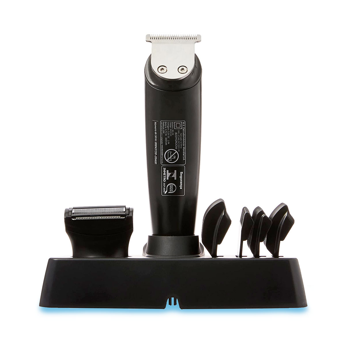 - Possui 6 acessórios: 2 aparadores e 4 pentes de corte