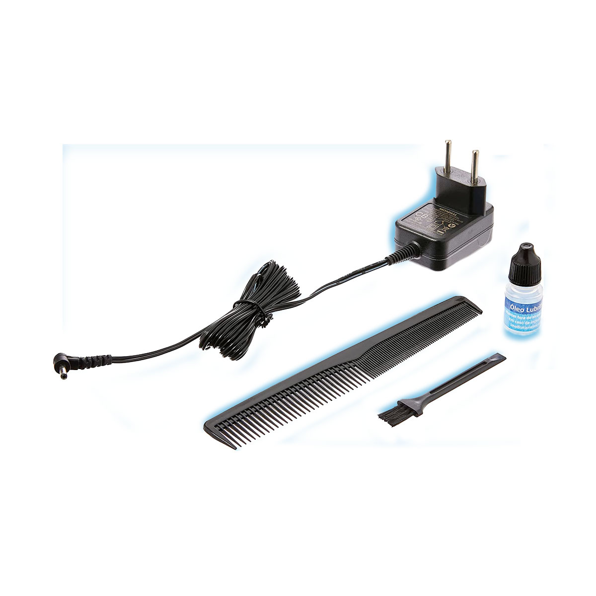 - Aparadores para: barba, bigode, cabelo e corpo