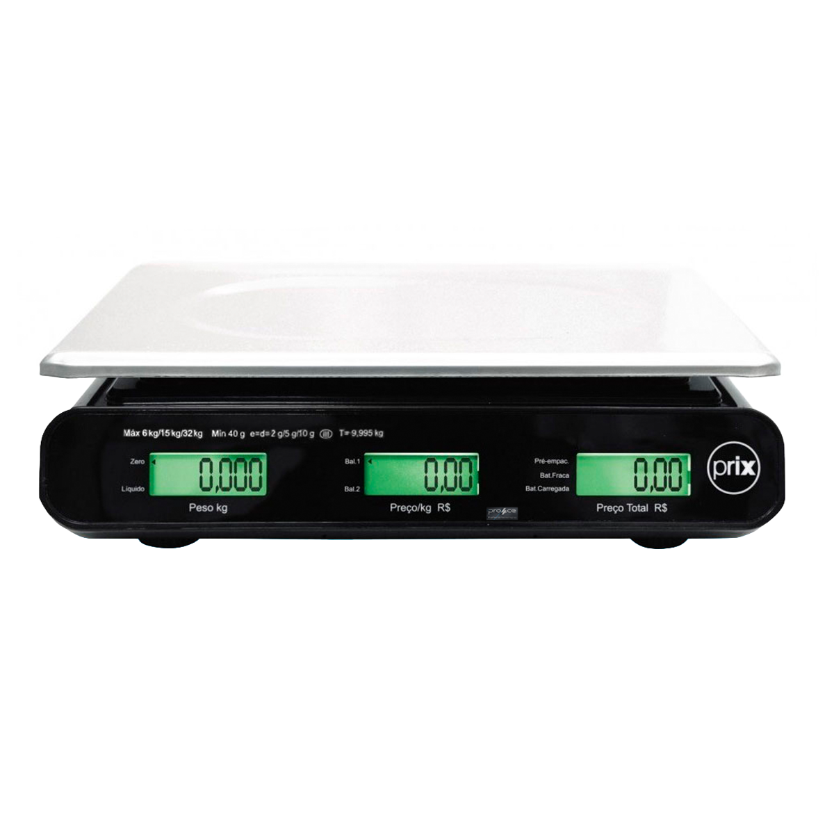 - Capacidade de pesagem: 32 kg(Divisão de 2 g de 0 a 6,000 kg / Divisão de 5 g de 6,005 a 15,000 kg / Divisão de 10 g de 15,010 a 32,000 kg)