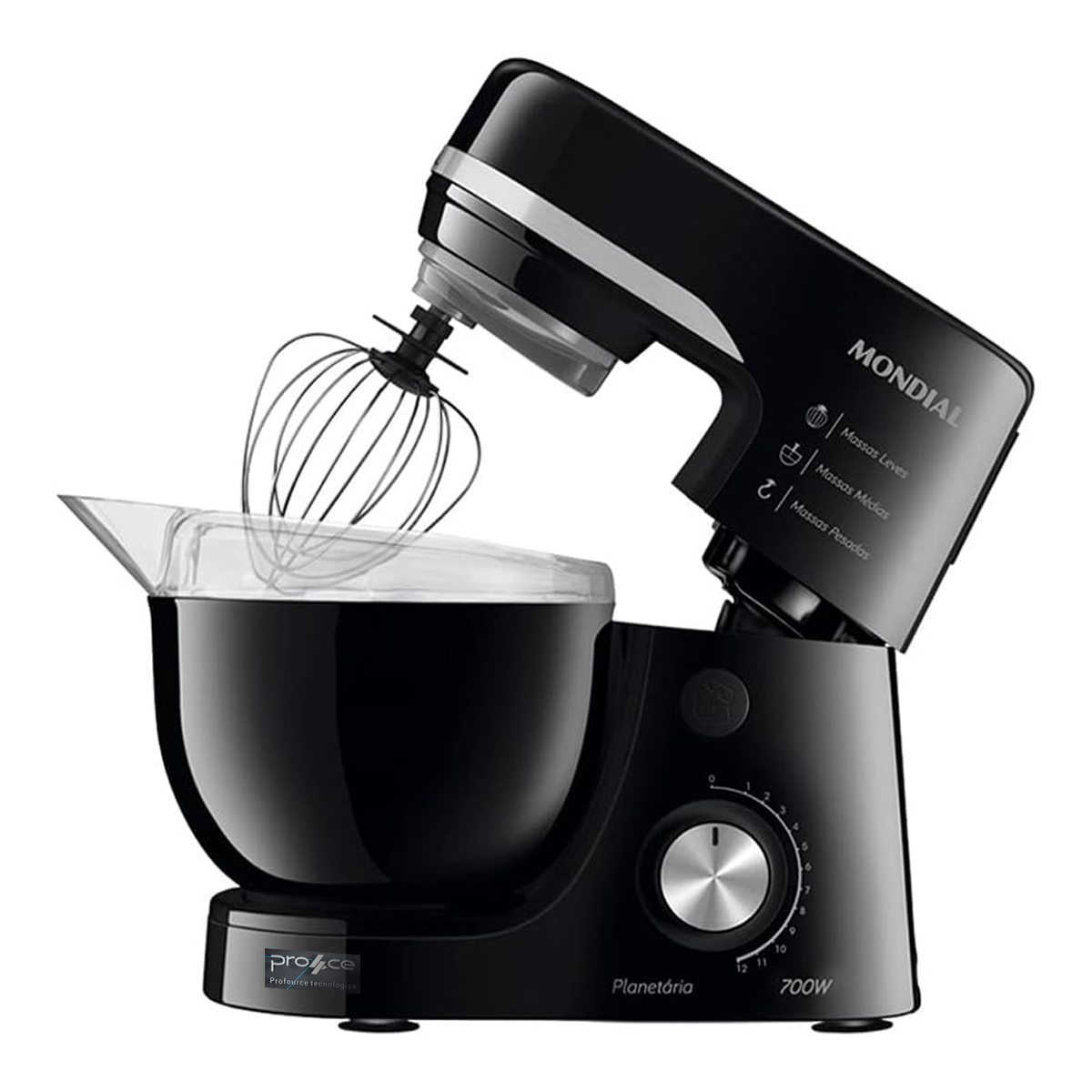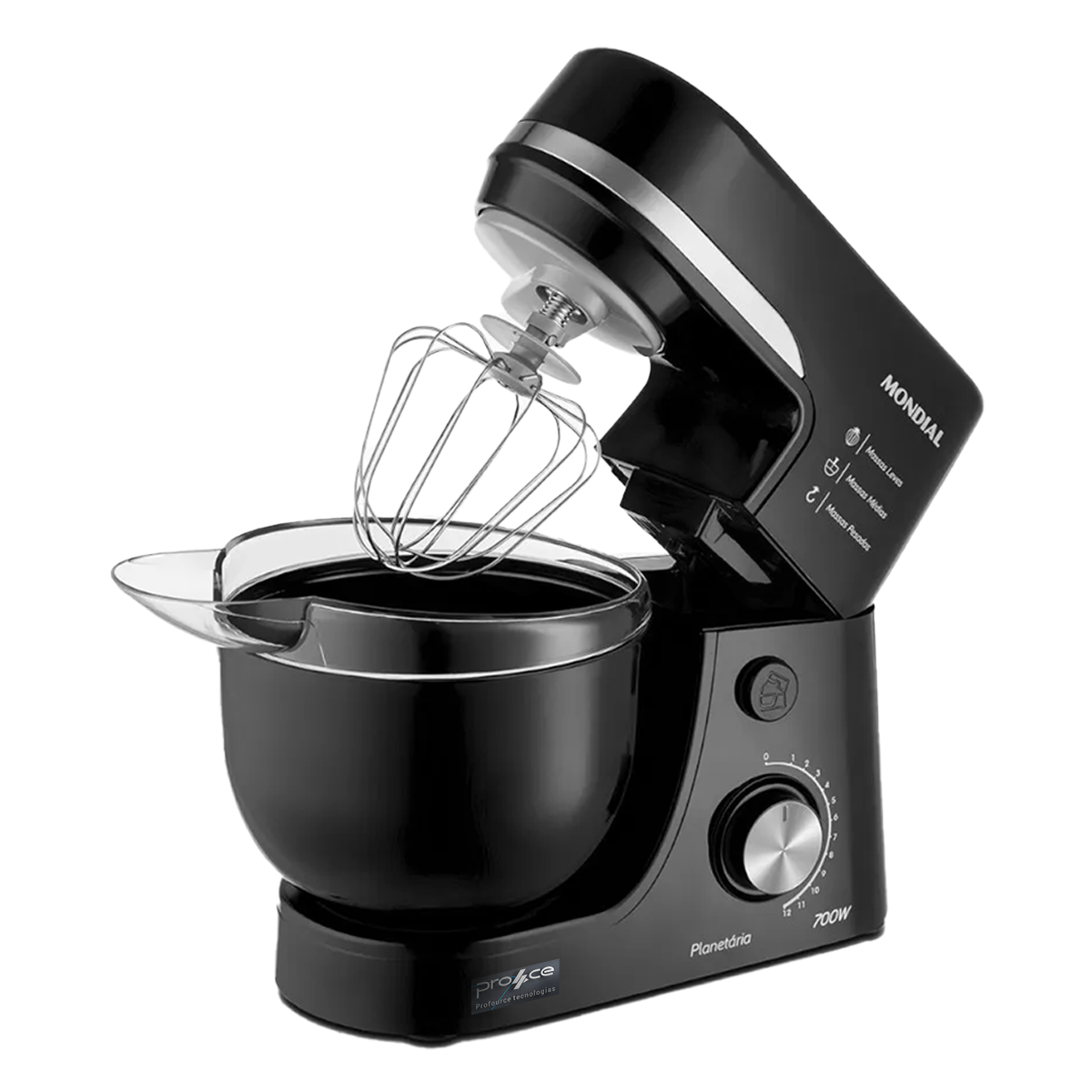 A Batedeira Planetária Mondial BP-03-B foi feita para facilitar o seu dia a dia na cozinha, oferecendo potência e versatilidade em cada preparo. Com 700W de potência e 12 velocidades, ela garante força e controle para misturar diferentes tipos de massas, cremes e chantilly com rapidez e eficiência. Seu movimento planetário proporciona uma mistura mais homogênea e com melhor textura, enquanto os três tipos de batedores permitem preparar desde massas leves até as mais pesadas com o mesmo desempenho.