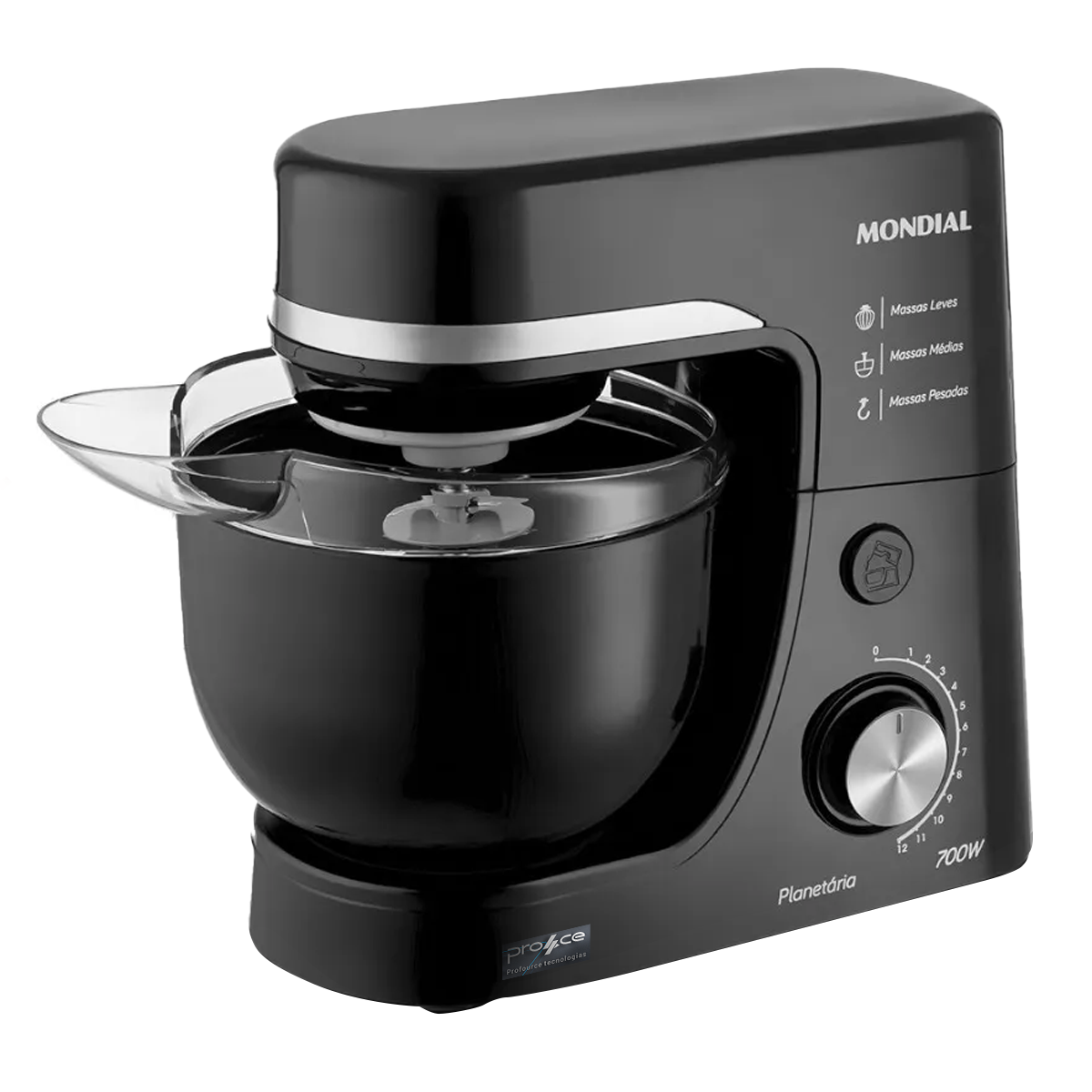 Com capacidade de 4,5 litros, a tigela da BP-03-B é uma das maiores da categoria, ideal para receitas em grandes quantidades. Além disso, a tampa antirrespingos facilita a adição de ingredientes durante o uso, mantendo tudo limpo e organizado. O sistema de abertura automática torna o manuseio mais prático, e os pés com ventosas garantem estabilidade durante o funcionamento. Completa e potente, a Mondial BP-03-B é a parceira ideal para quem busca desempenho e praticidade na cozinha.