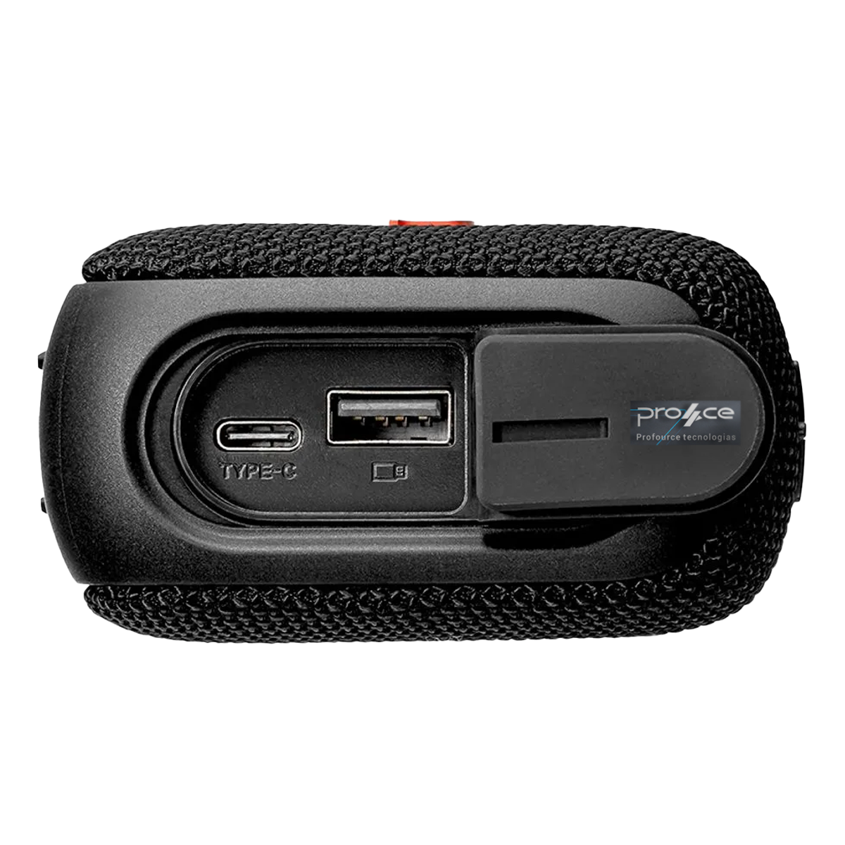 Perfeita para uso interno ou externo, a caixa conta com certificação IPX5, sendo resistente a jatos fortes de água — ideal para festas, praia ou piscina. Sua bateria de até 8 horas garante autonomia total, enquanto a entrada USB com função passa-pasta permite reproduzir suas músicas diretamente do pendrive.