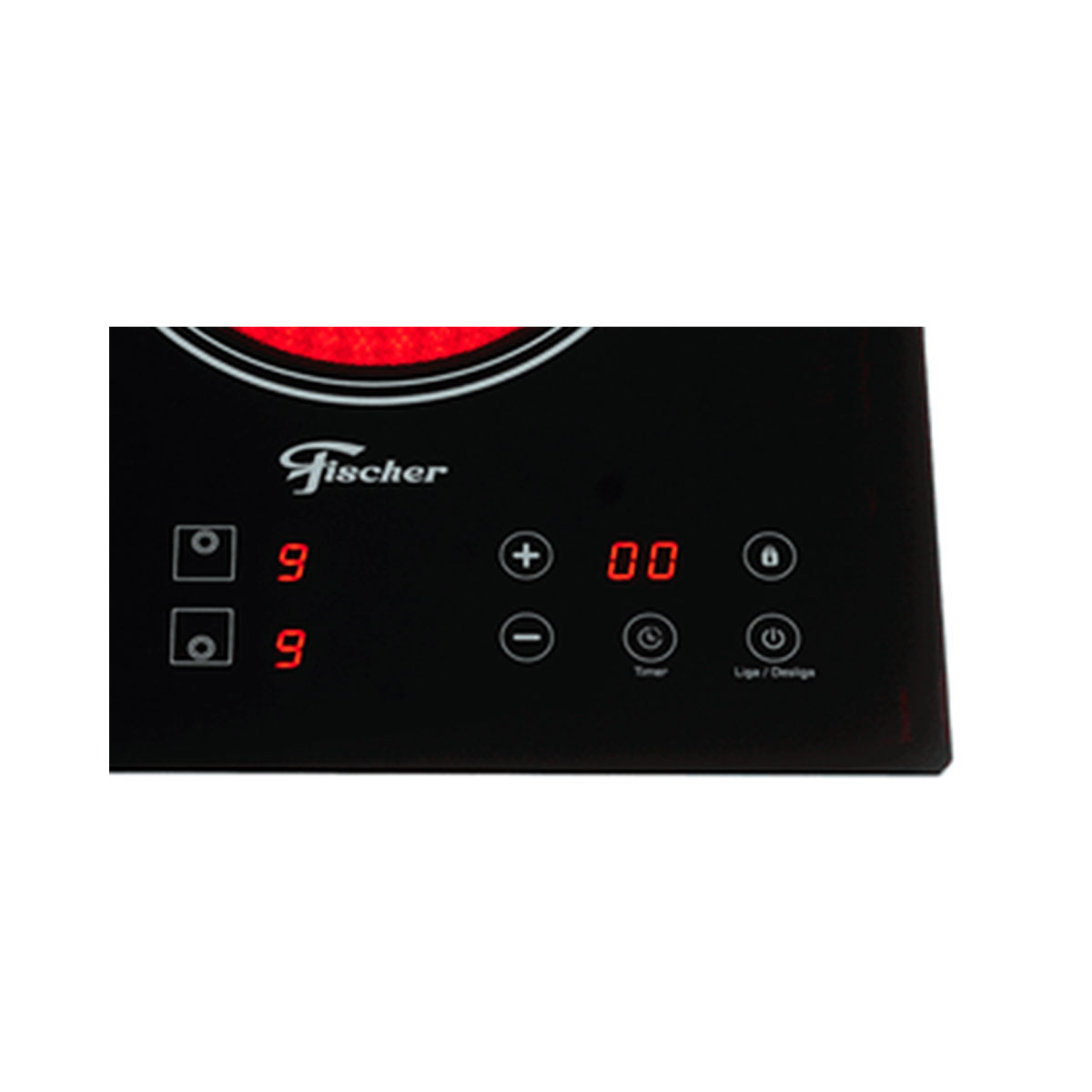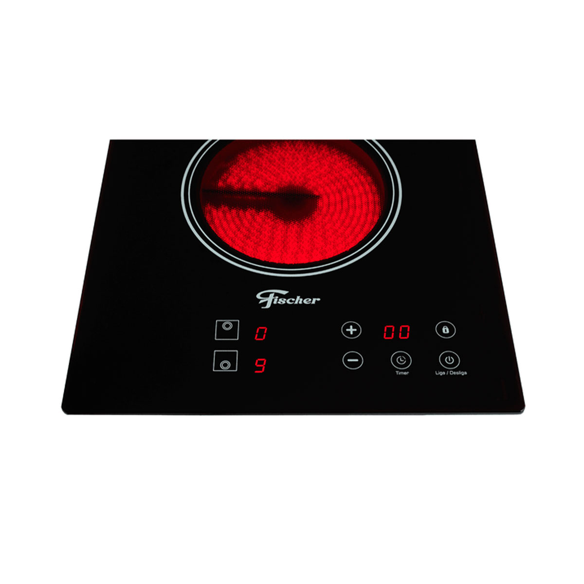 Cooktop Elétrico Fischer 2 Bocas com Touch Screen Vitrocerâmica 220V, possui uma mesa de vitrocerâmica e dois queimadores elétricos (1800W e 1200W), com trava de segurança e 9 níveis de potência. Conta com um sistema indicador de superfície quente, proporcionando segurança, alta eficiência, precisão e conveniência.