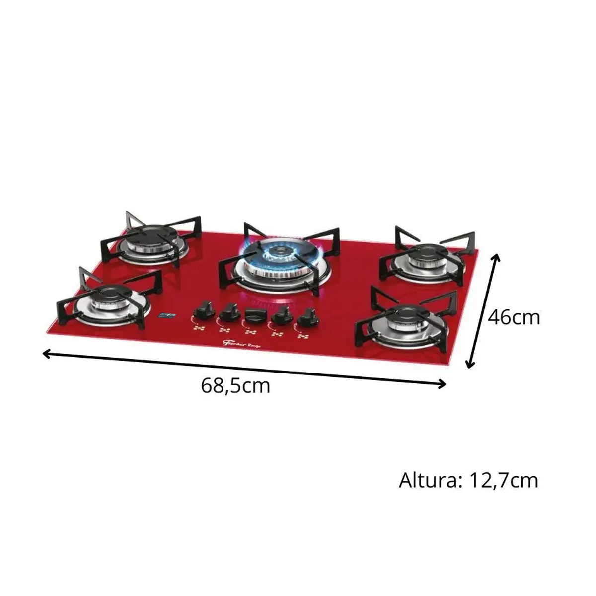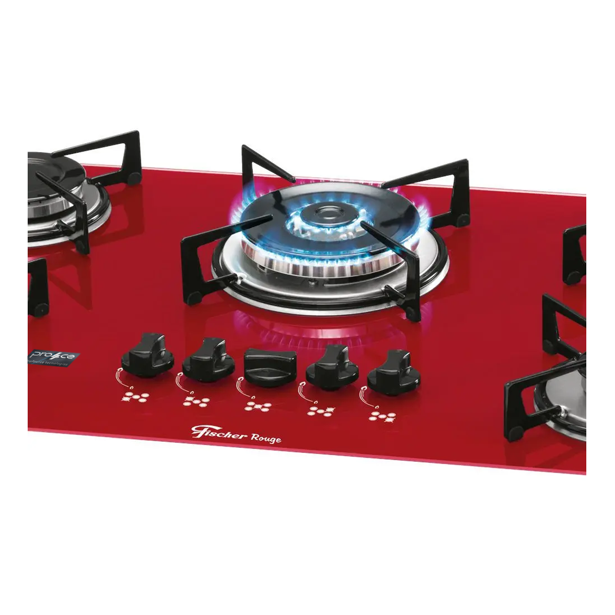 Fogão Cooktop Fischer 5Q Tripla Chama Gás Mesa Vidro Bivolt Vermelho - Rouge