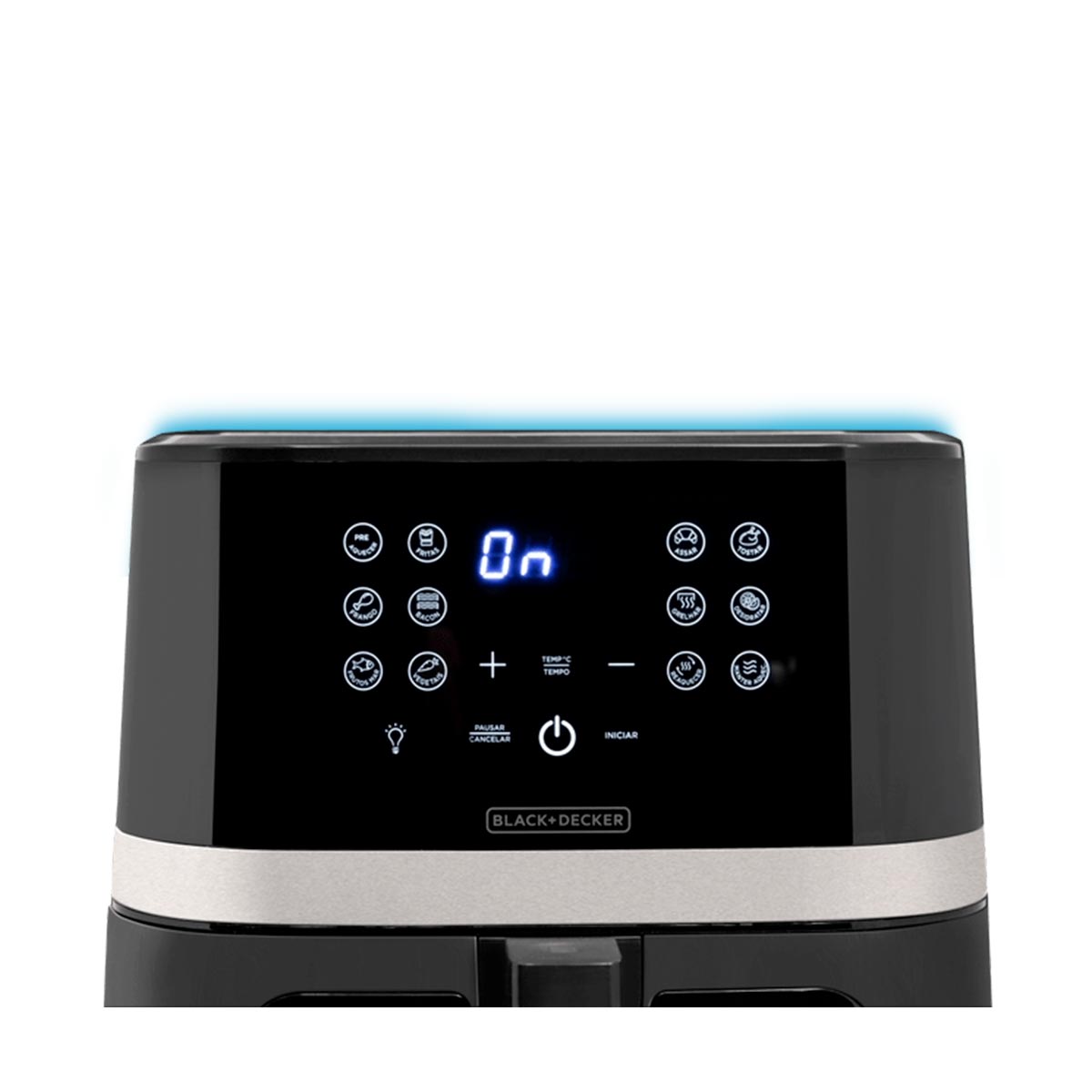 - 12 programas de preparo: preaquecer, fritas, frango, frutos do mar, bacon, vegetais, assar, tostar, grelhar, desidratar, reaquecer e manter aquecido;