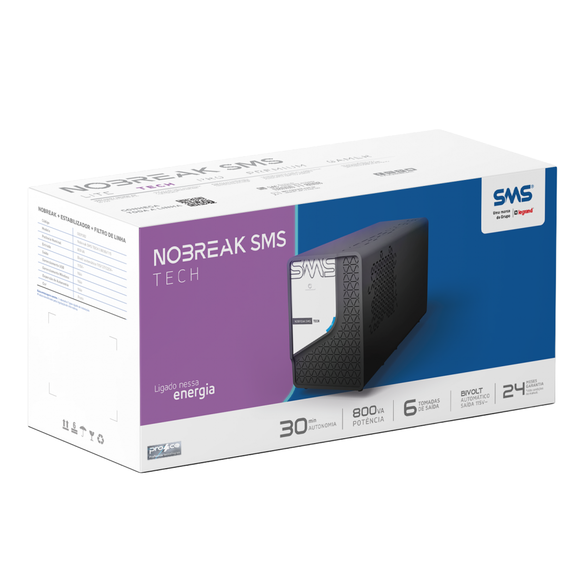 Nobreak SMS Tech 800VA Entrada Bivolt e Saída 115V 29302