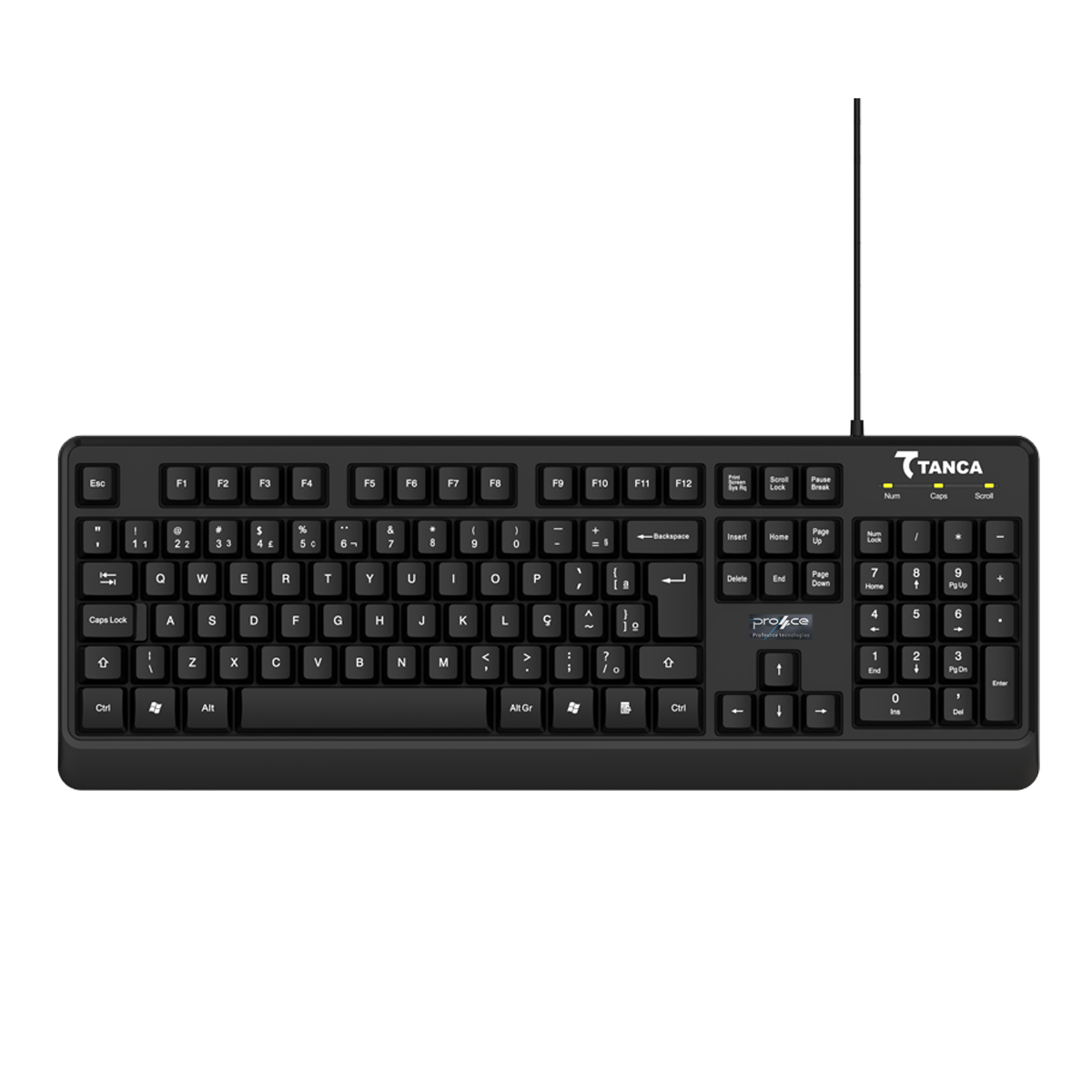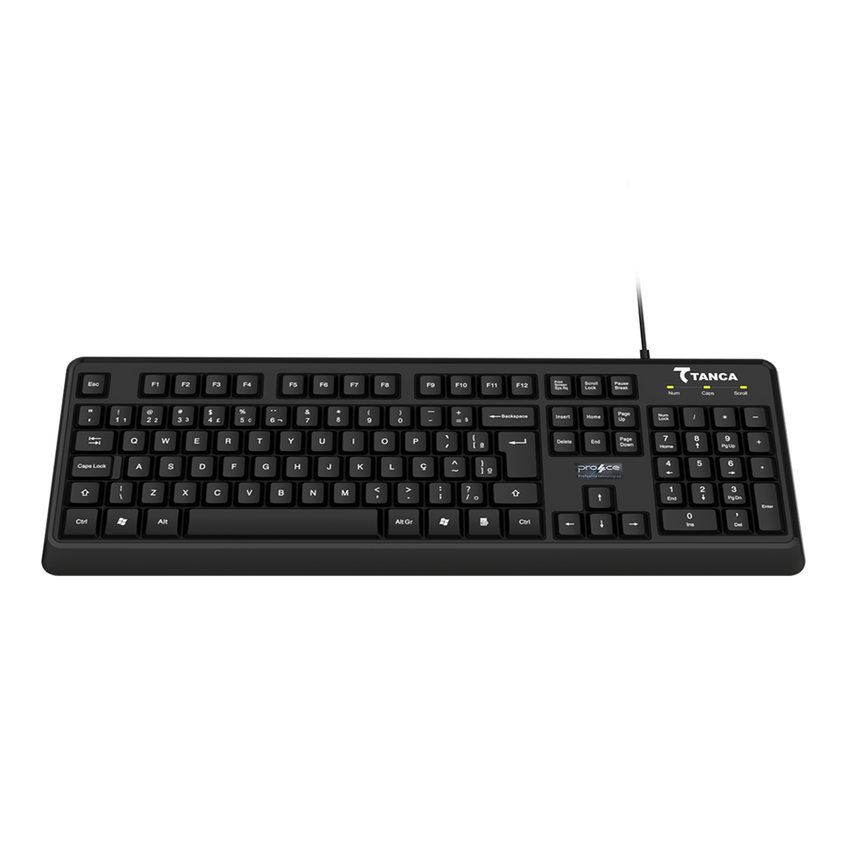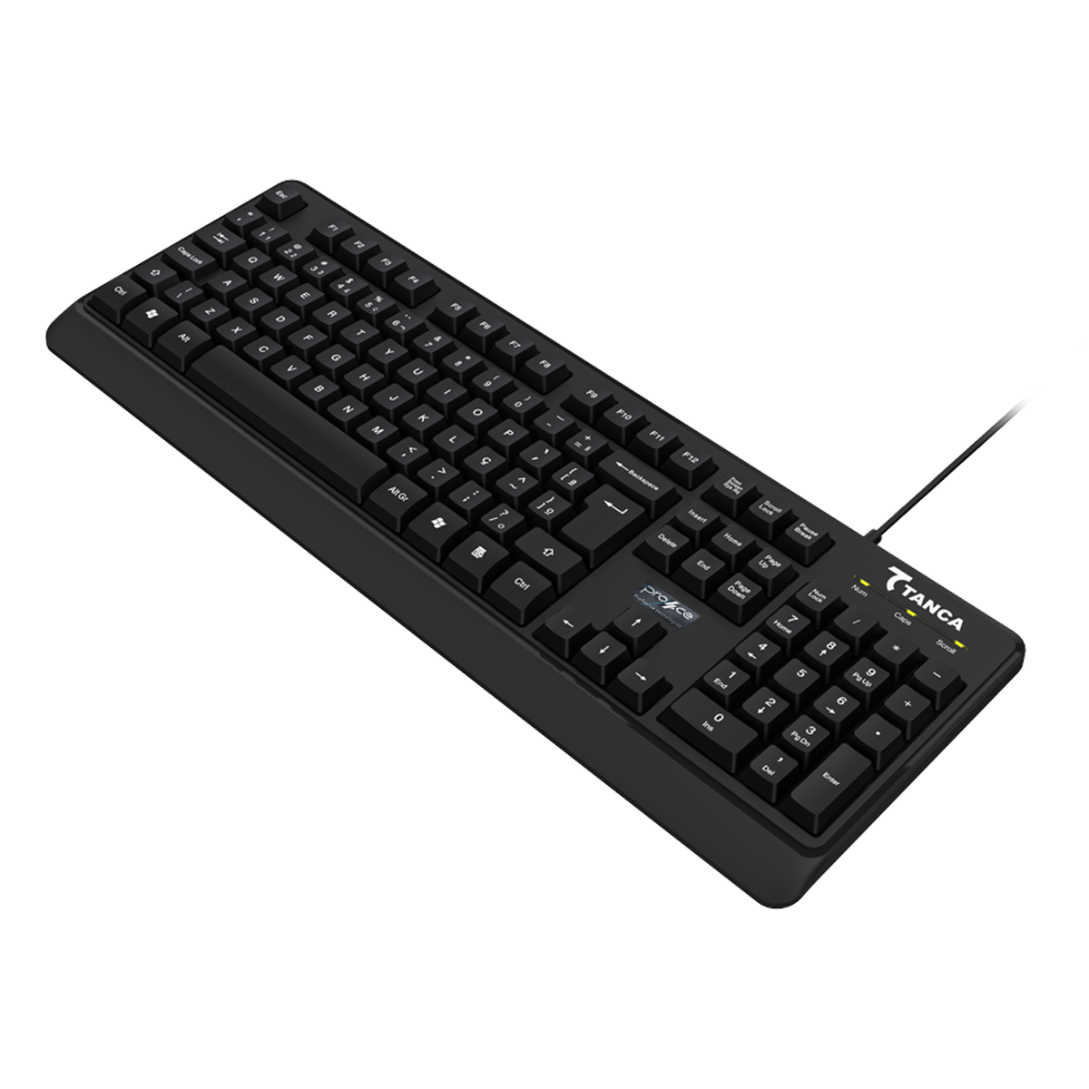 O teclado Tanca TMK-101 possui padrão ABNT2 e oferece robustez e precisão nas atividades diárias.