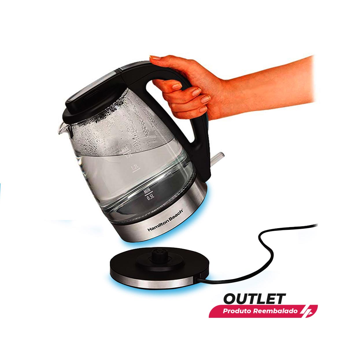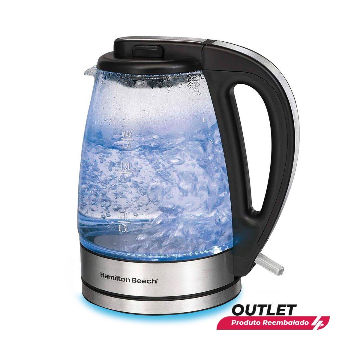 Importante: A Chaleira Elétrica Hamilton Beach Vidro Transparente em outlet, é um produto de devolução que retornou ao nosso estoque. Essa chaleira foi testada, higienizada e está em perfeito funcionamento. Por ser um produto de retorno, ele pode apresentar marcas, riscos ou sinais de uso.