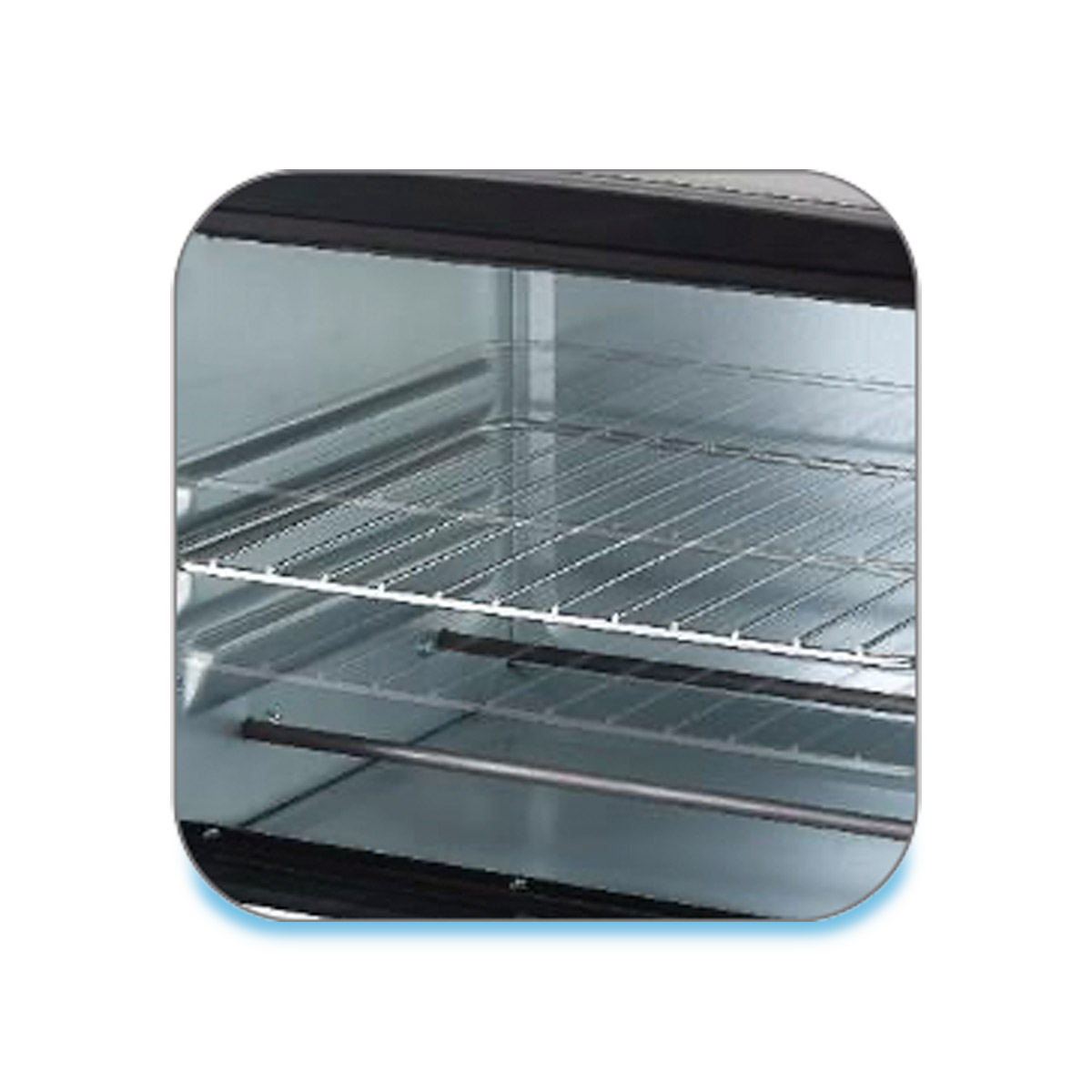 Tudo mais rápido neste forno elétrico que assa, tosta, aquece e gratina Alta potência com capacidade de 50 litros, prepara diversos tipos de assados, tosta e aquece alimentos variados e possui quatro resistências que podem ser ligadas juntas ou em pares.