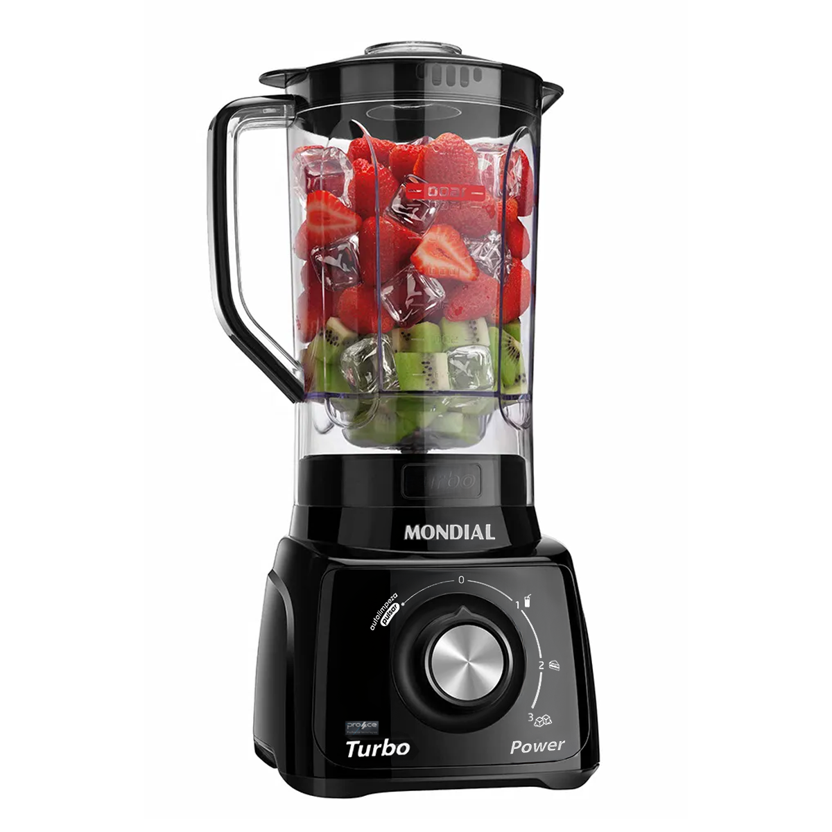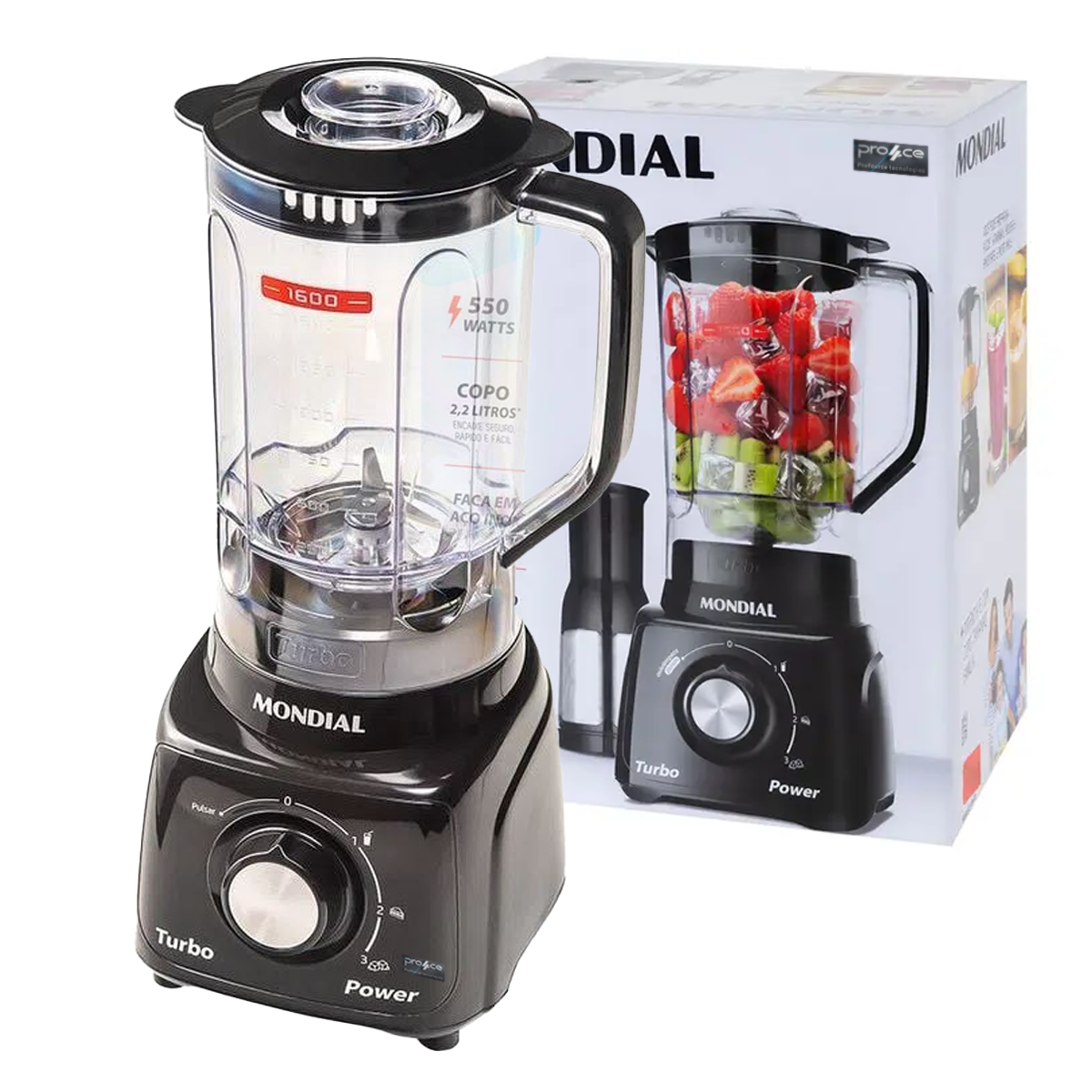 Com design moderno e alto desempenho, o Liquidificador Mondial Turbo Power L-99-FB é perfeito para quem busca praticidade e eficiência na cozinha. Com 550W de potência e capacidade total de 2,2 litros, ele prepara sucos, vitaminas, molhos e massas com rapidez e excelente resultado. Suas lâminas em inox garantem trituração precisa e durabilidade, enquanto o filtro em inox separa sementes e bagaços, deixando suas bebidas mais lisas e sem necessidade de coar.