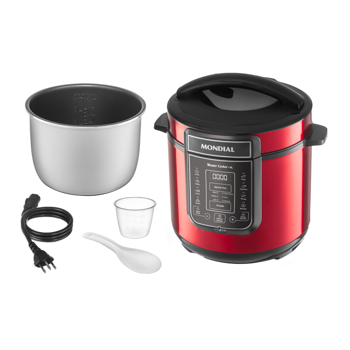 - Itens inclusos: 01 Panela de Pressão Elétrica Digital; 01 Colher; 01 Copo Medidor; Manual de Instruções